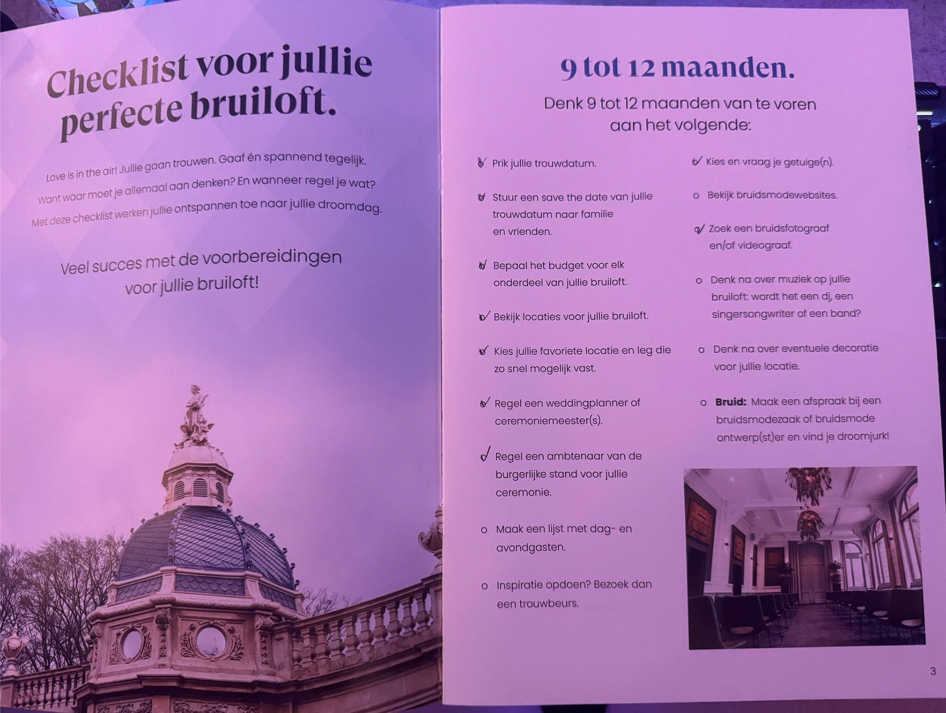 - Offerte opgevraagd voor de huwelijksreis (ook belangrijk!)