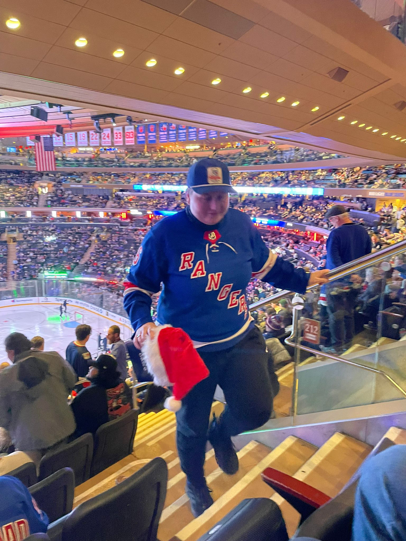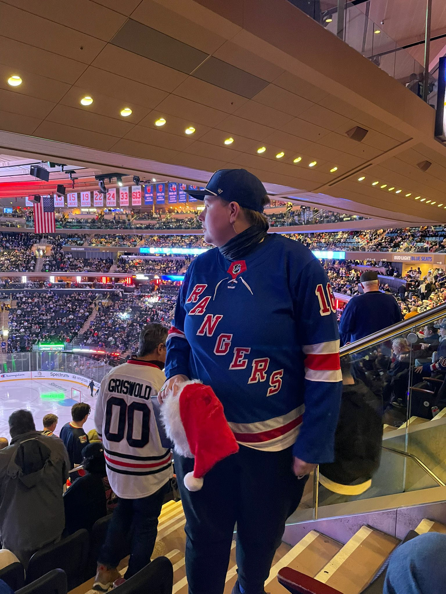 Gelukkig kon hij er ook nog van genieten. Het was een fantastische wedstrijd, ondanks het verlies van de Rangers: wij hebben echt gigantisch zitten genieten van alle entertainment en de spannende momenten tijdens de wedstrijd. Wat een geweld en wat een show! Vooraf aan de wedstrijd werd natuurlijk het Amerikaanse volkslied gezongen (The Star-Spangled Banner) en als een stel echte Amerika-lovers stonden we daar natuurlijk, met volle overtuiging, mee te doen met het volkslied.